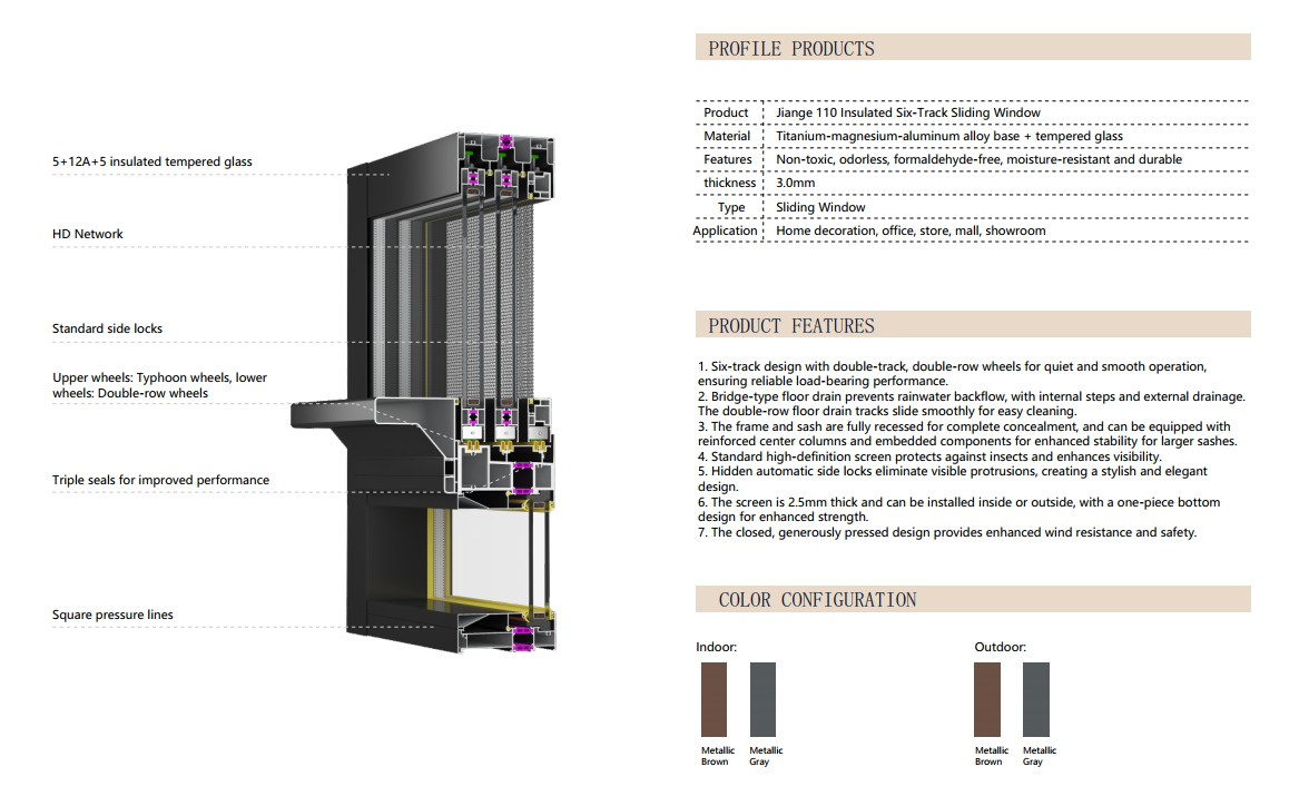 نافذة منزلقة بستة مسارات من طراز Jian Ge 110 Broken Bridge
